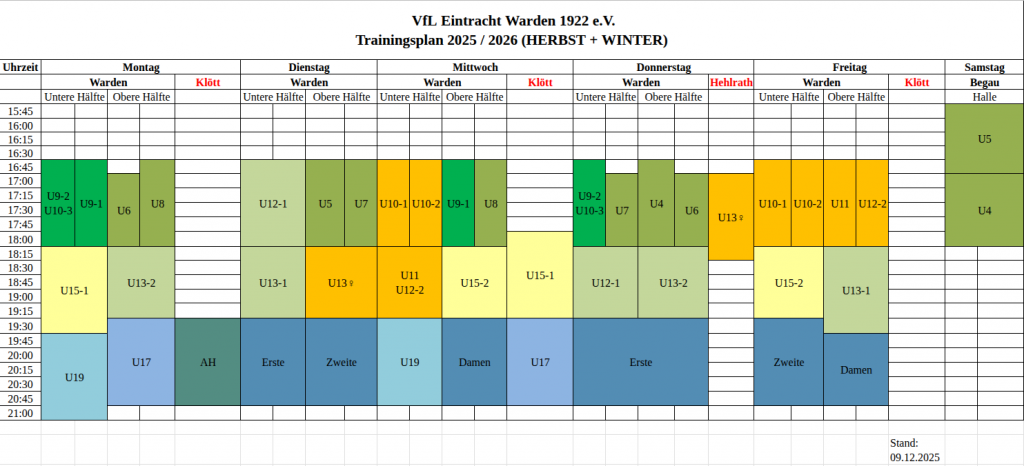 Stand: 09. Dezember 2025 – Alle Trainingszeiten ohne Gewähr.